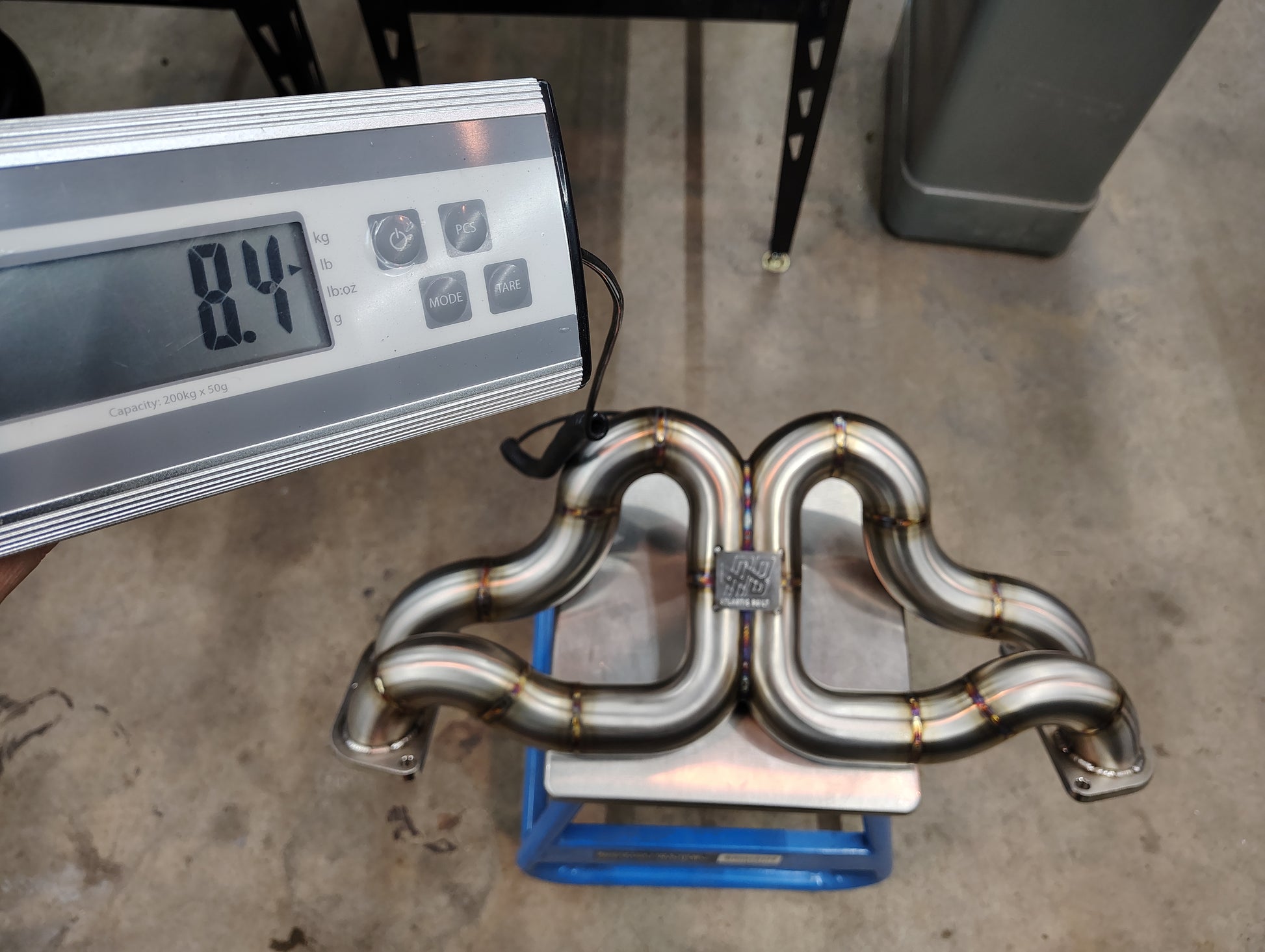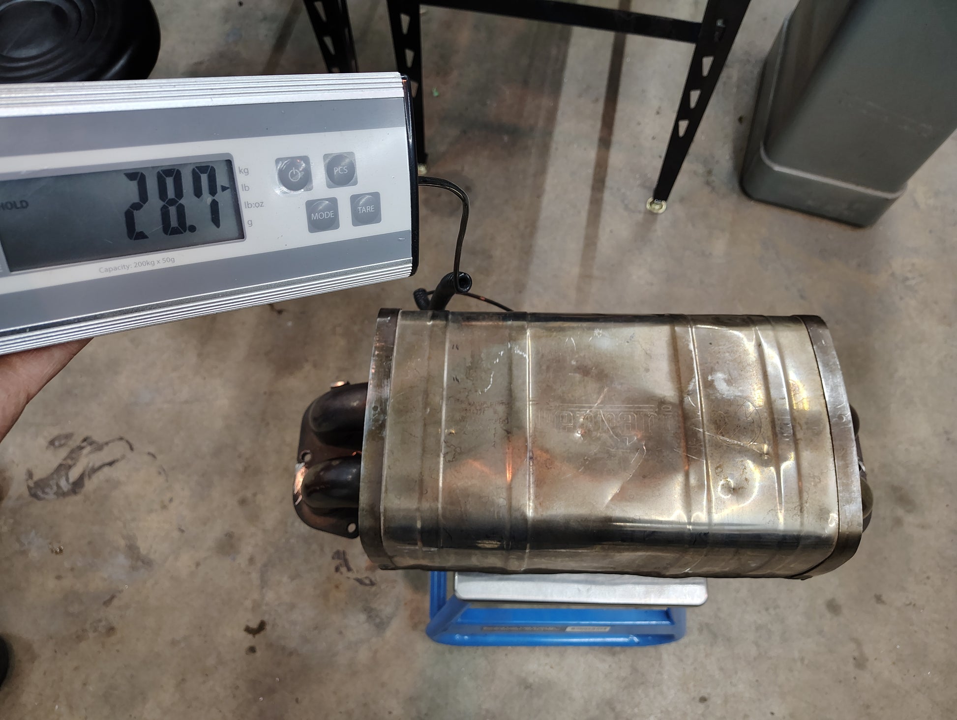 Weighing in at just 8.4lbs in comparison to the stock muffler at 28.7lbs. Removing over 20lbs from the very rear of the vehicle.